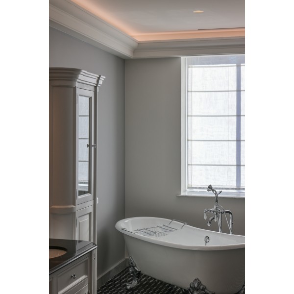 Wonderful modern lighting cornice. Made out of plaster, known as "staff". Delivered in pieces of 2.5 meters long.