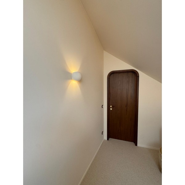 Applique en plâtre en forme de petite sphère. Design très épuré, contemporain et élégant. Idéale pour éclairer votre intérieur avec discrétion et élégance.